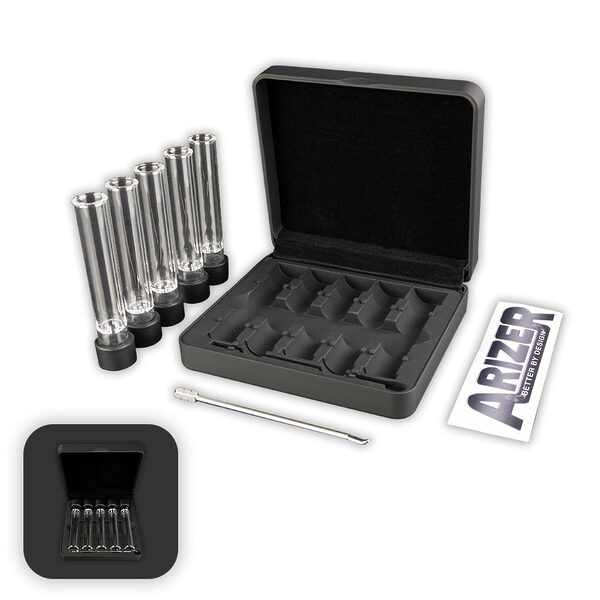 Description: Always be ready to go with the Arizer Go Pre-Load & Go Case. Conveniently carry five pre-loaded Glass Aroma Tubes & Stainless Steel Stirring Tool, in this discreet, stylish, and odor reducing case.